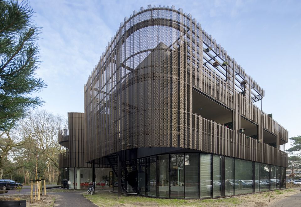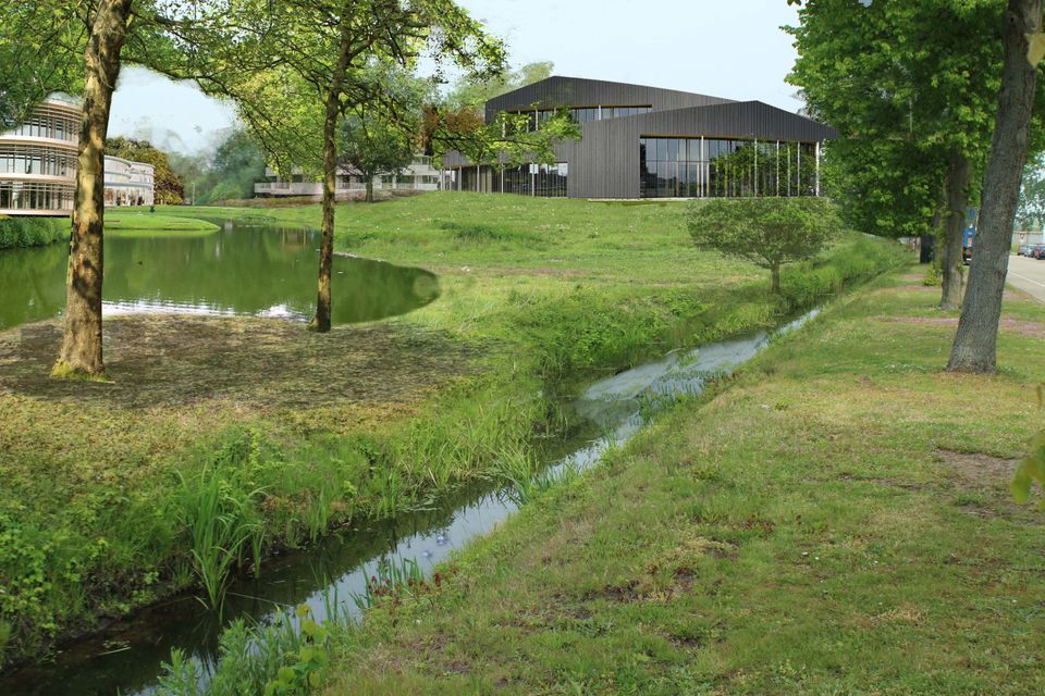 In een uitloper van het bos komt Science Park West. Verscholen tussen het groen, met abstracte gebouwen die op lijken te gaan in de omgeving.